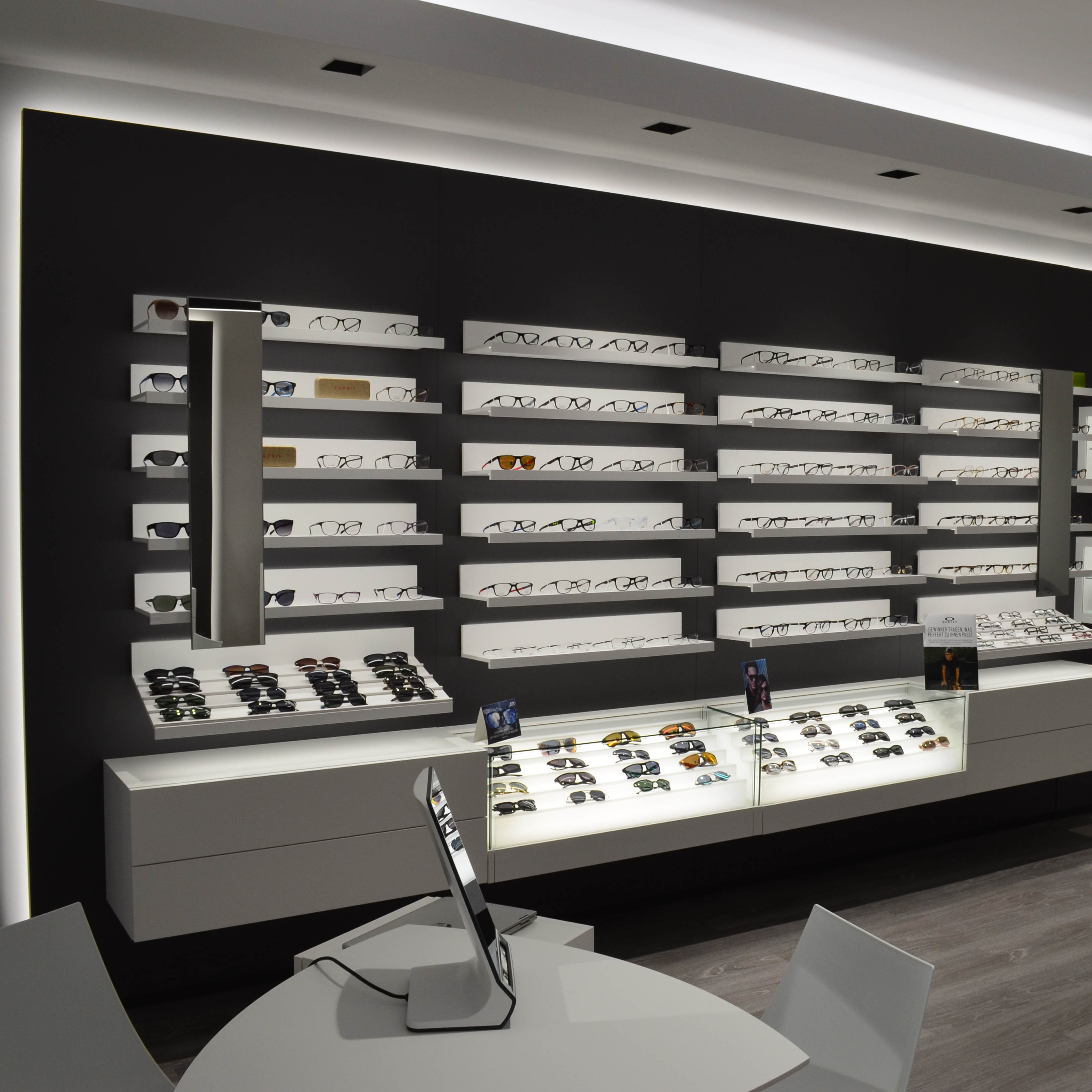Das System ermöglicht es Ihnen die Präsentation beliebig umzugestalten. Sie haben eine große Auswahl an Zubehör, wie z.B. Vitrinen, Glasböden, Schrägböden, Metall-Brillenhalter, Stauräume, Werbeflächen, Spiegel u.s.w.. Hier können Sie saisonale Akzente setzen und Ihr Sortiment den Bedürfnissen anpassen. Gestalten Sie die Rückwände mit Beton, Holz, Tapeten oder sonstigen Strukturen und geben Sie Ihrem Geschäft die nötige Individualität.