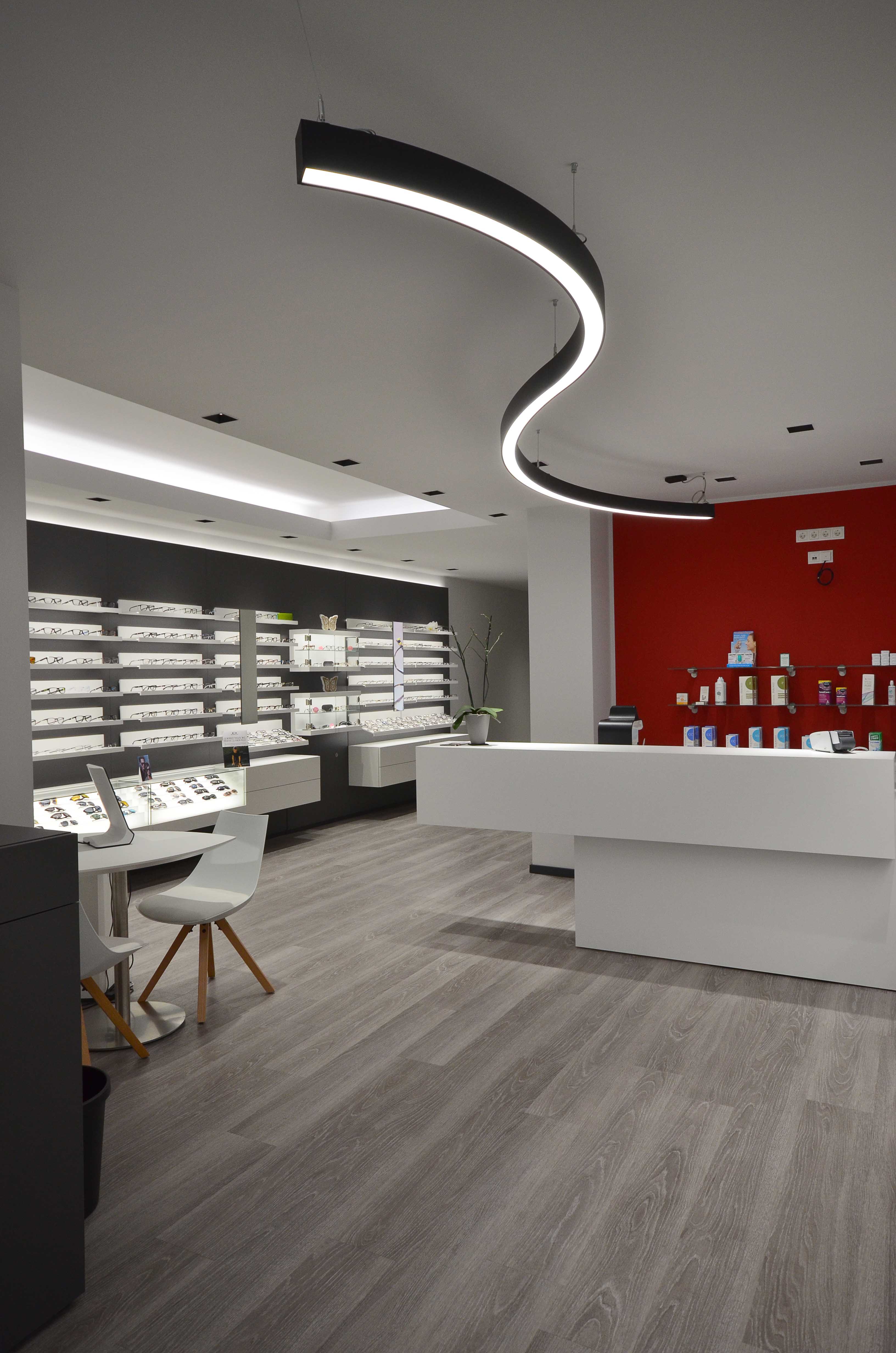 besondere Deckenlösung entworfen werden, die gleichzeitig Ruhe und Stimmung ins Geschäft bringt.