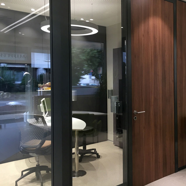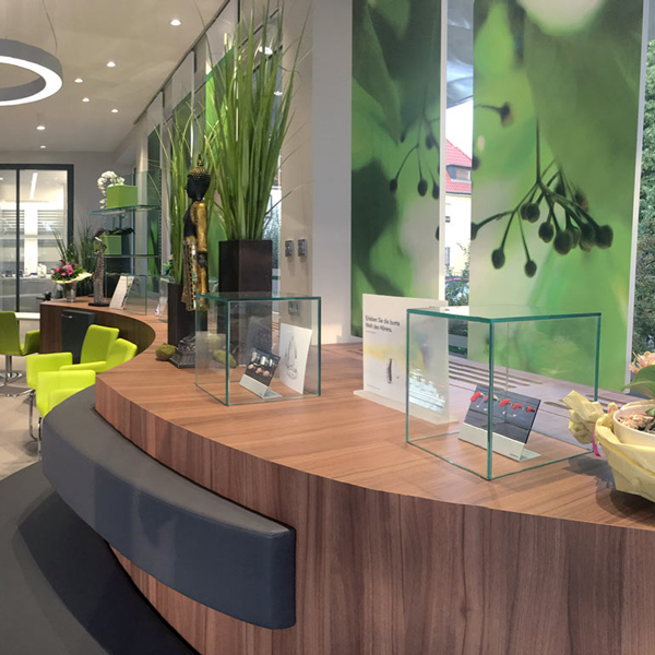 Besonderheiten bei diesem Projekt sind die integrierte Multimediatechnik, die Schaufenstergestaltung sowie speziell für die Akustik entwickelte Beratungstische, die eine optimale Grundpositionierung des Kunden ermöglichen.