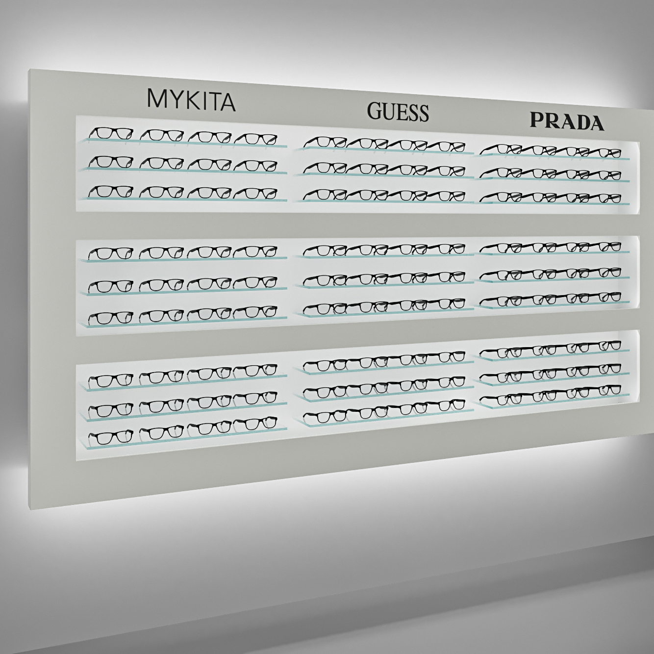 Die Linie C1 zeichnet sich durch ihre Leichtigkeit, Flexibilität und ein extrem gutes Preis-Leistungs-Verhältnis aus. Auch kleinere Geschäfte können perfekt in Szene gesetzt werden. Die Module bestehen aus horizontal ausgerichteten Warenpräsentationen mit Ambiente-Beleuchtung, die wahlweise mit unseren Metall Brillenhaltern oder Glasablagen bestückt werden können. Des Weiteren bieten wir Ihnen eine Vielzahl an Zubehör, um exakt auf Ihre Ausstattungswünsche eingehen zu können. Durch Zusatz eines Rahmens mit integrierter LED Beleuchtung wird Ihre Ware perfekt ausgeleuchtet, Sie haben die Auswahl zwischen 4 verschiedene Rahmen. Das Modulmaß beträgt 84 cm. Farben und Oberflächen sind frei wählbar und können somit optimal an Ihr Konzept angepasst werden.